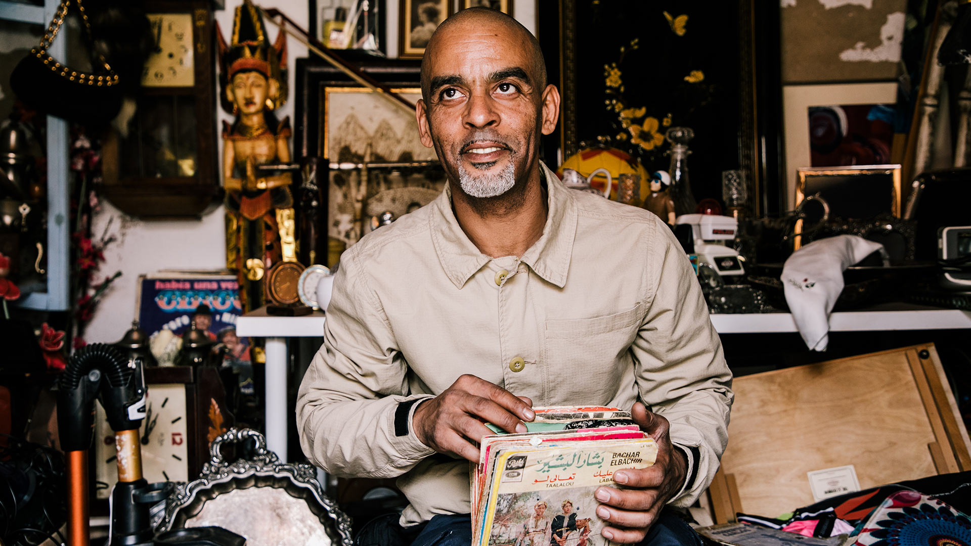 Enfant du hip-hop et de la culture DIY, Aziz Konkrite puise son inspiration dans des 45 tours qu’il chine et archive lors de ses voyages à moto à travers le Maroc, amassés dans son home-studio au fil des années.