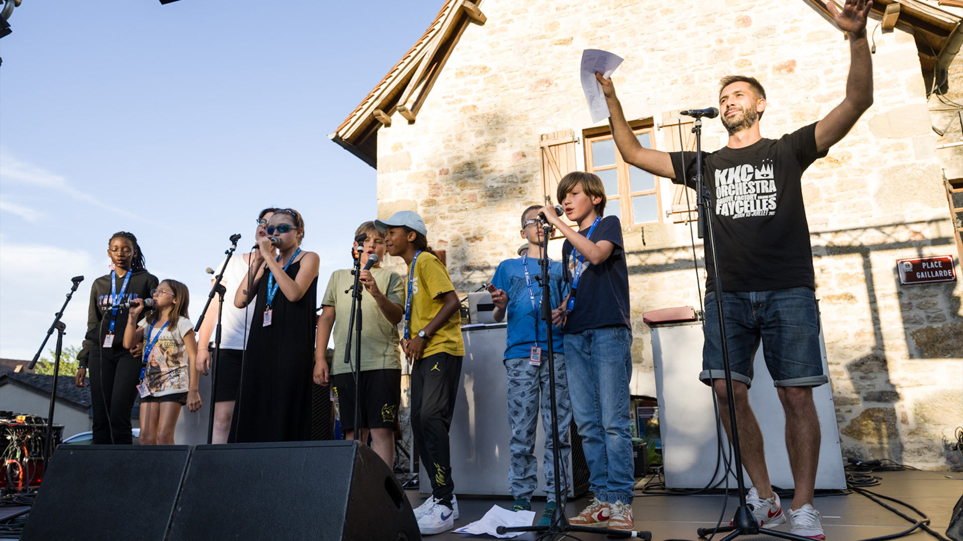 Une colonie de vacances écriture et musique animée par le KKC Orchestra avec une groupe de 10 jeunes. En une semaine ils vont écrire des textes, composer des musiques… et créer leurs morceaux. Ils monteront sur scène pour nous présenter leur travail ! Un moment toujours fort en émotion avec ces jeunes artistes de demain !